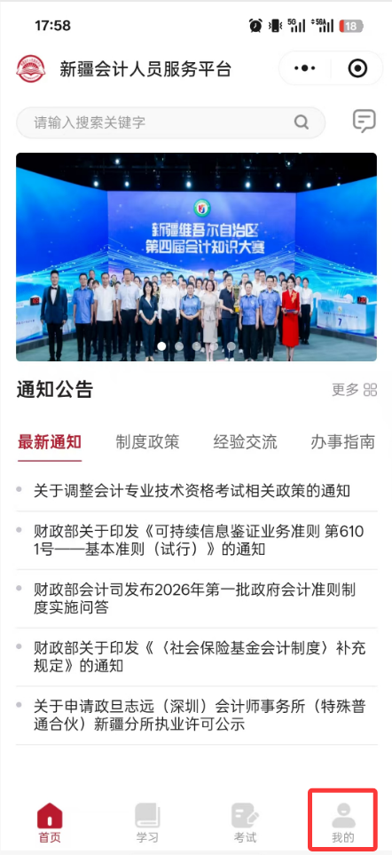 1. 进入新疆会计人员服务平台首页,点击小程序,手机微信扫码;