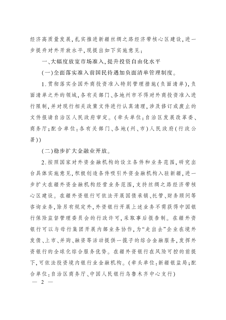 新疆维吾尔自治区关于积极有效利用外资推动经济高质量发展的实施意见